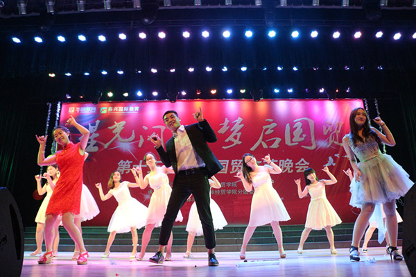 At 7 o’clock on the evening of May 28, the grand evening party “ Starlight of International Trade”, organized by school’s student union and all students of year 2014, had its opening ceremony in Jiaoqiao’s auditorium. Leaders and some teachers were present and expressed warm blessings to all students of the school.