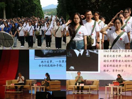 实践首日,团队与全国52所高校师生一同在井冈山革命烈士陵园肃立默哀,缅怀在革命斗争中牺牲的烈士和英雄。随后,在全国青少年井冈山革命传统教育基地,成员们通过情景教学重温“三湾改编”,在角色扮演中体悟“党指挥枪”的历史意义。在开国少将龙开富之孙龙小钢和核试验基地开拓者张蕴钰之子张旅天的家风课堂上,两位讲述者娓娓道来“个人选择与国家命运同频”的价值追求,令在场师生动容。